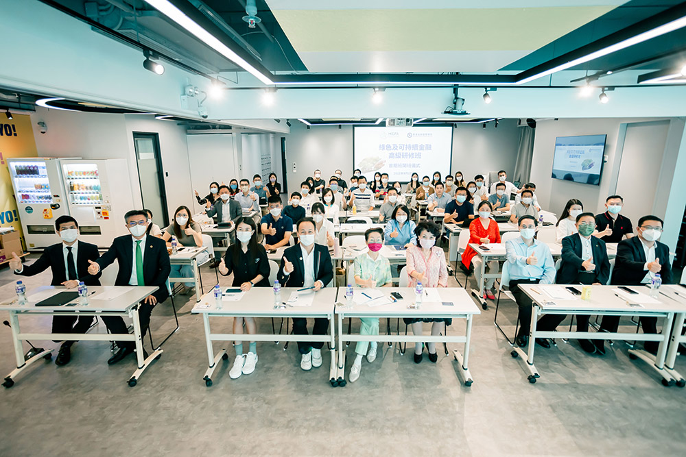由綠色金融協會與香港金融管理學院共同舉辦的「綠色及可持續金融高級研修班」首期班開班儀式於8月27日上午假上環Yo Place築夢空間舉行。香港金融管理學院董事長王中英女士首先致歡迎詞,對大家的光臨表示歡迎及感謝;在介紹了學院業務後,王董事長勉勵各位學員認真學習,積極探討,並祝本次研修班取得圓滿成功。香港綠色金融協會主席兼會長馬駿博士作為本次研修班的課程統籌,他在致開幕詞時,介紹了協會基本情況及相關宗旨理念,並向學員介紹了協會近幾年在綠色及可持續金融行業內開展的活動及成果。