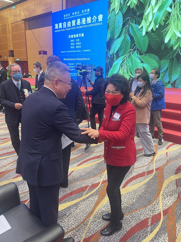 2月15日上午香港金融管理學院執行院長張奕敏先生和王中英董事長受邀出席海南自貿港香港專場推介會。海南省委沈曉明書記和王董,張執行院長親切握手,合影留念,氣氛融洽。