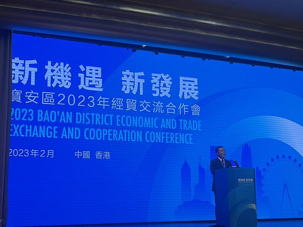 2月17日下午,香港金融管理學院應深圳寶安區人民政府的邀請,王中英董事長、張奕敏院長、郭啟興總幹事等參加了在香港君悅酒店舉辦的“新機遇 新發展”深圳寶安2023年經貿交流合作會。