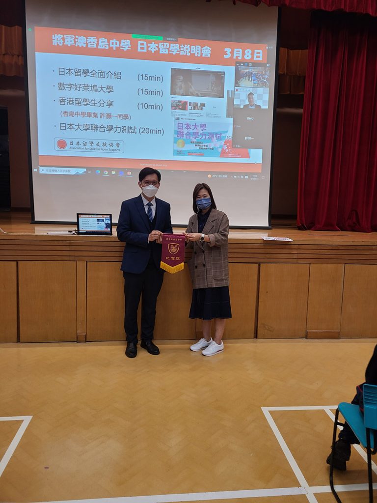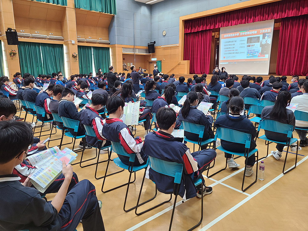 日本大學聯合學力測試中心(JPUE)與日本留學支援協會被邀請於3月8日上午到將軍澳香島中學舉行日本留學講座,現場有接近180名師生出席。