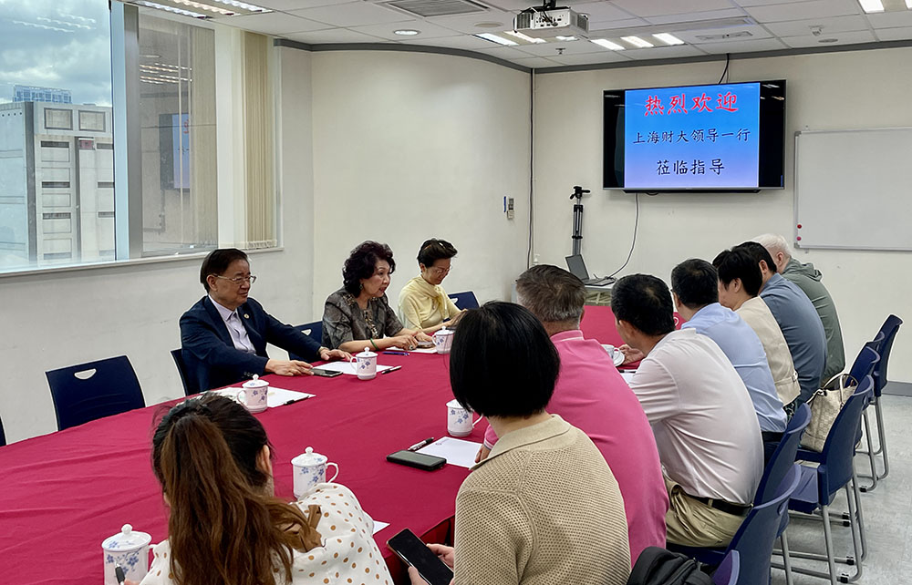 7月14日上午,上海財經大學原副校長王洪衛教授、公共經濟與管理學院書記方芳教授、經濟學院院長周亞虹教授、公管學院副院長宗慶慶副教授、上財香港校友會會長劉海生先生一行到我院做客,本院領導王中英董事長等熱情接待並共進午餐。