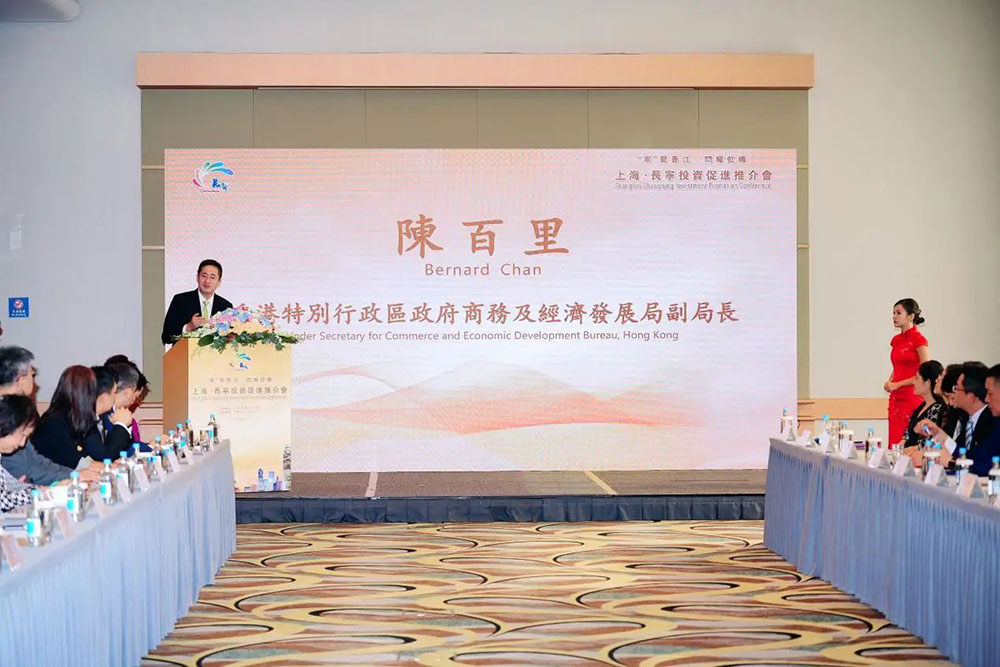 會上,香港特別行政區政府商務及經濟發展局副局長陳百裏緻辭,中共長甯區委書記張偉作長甯區投資環境主題推介。