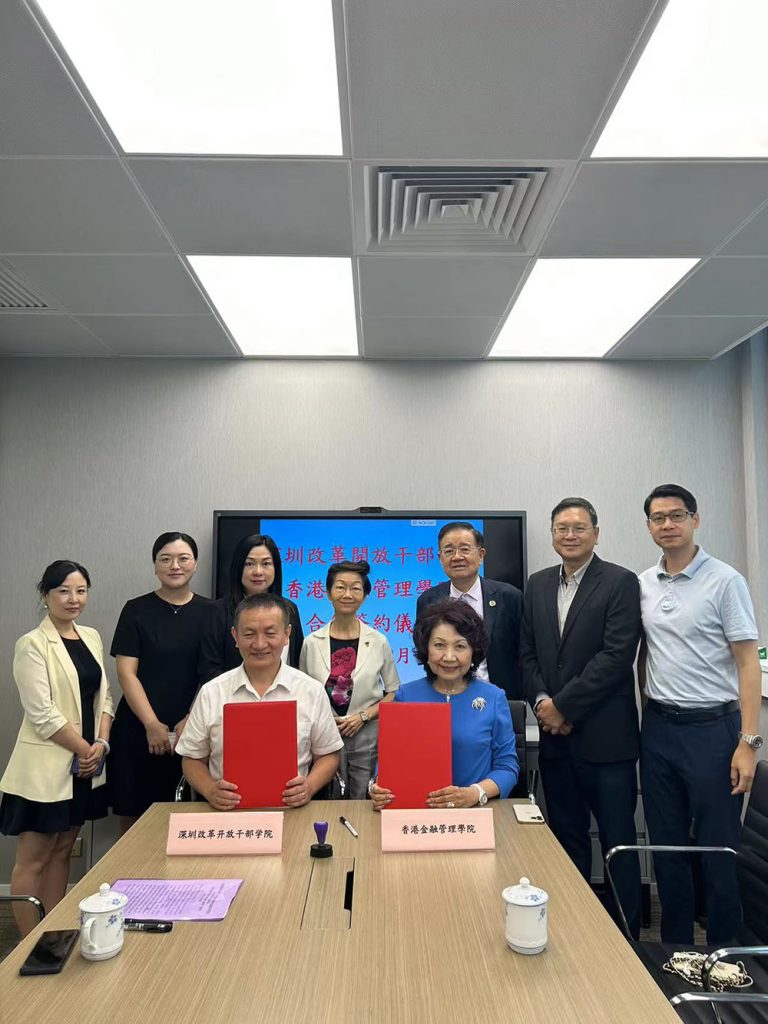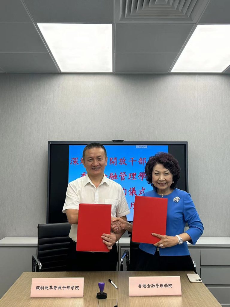 9月4日上午,香港金融管理學院和深圳改革開放幹部學院成功舉辦“培養國際化高素質技能人才戰略合作框架協議‘’簽約儀式。 學院董事長王中英和深圳改革開放幹部學院副院長董海濤進行簽約,雙方相關人員參加並見證簽約儀式。