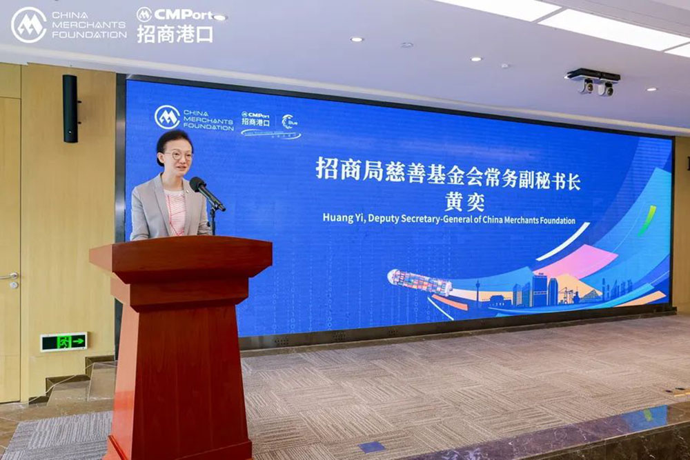 招商局慈善基金會常務副秘書長黃奕代表招商局慈善基金會感謝專案合作夥伴的努力和付出,以及每一位C Blue學員對項目的認同和投入,並通過Connection(連接)、Caring(關愛)、Courage(勇氣)、Change(改變)四個C開頭的英文單詞詮釋了招商局C系列公益品牌的資助理念。