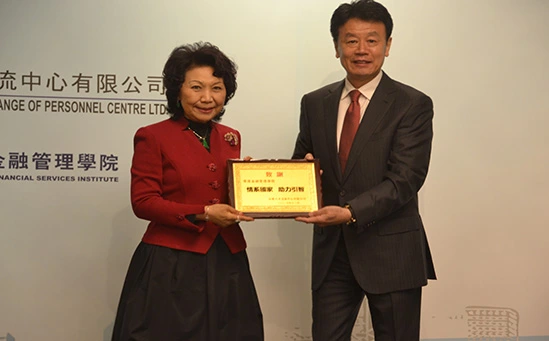 Mr. Ding Xuexiang (right), then Director of the Shanghai Personnel Bureau and now Director of the General Office of the Central Committee, visited Hong Kong to inaugurate the Hong Kong Institute of Financial Management as a training base outside Shanghai